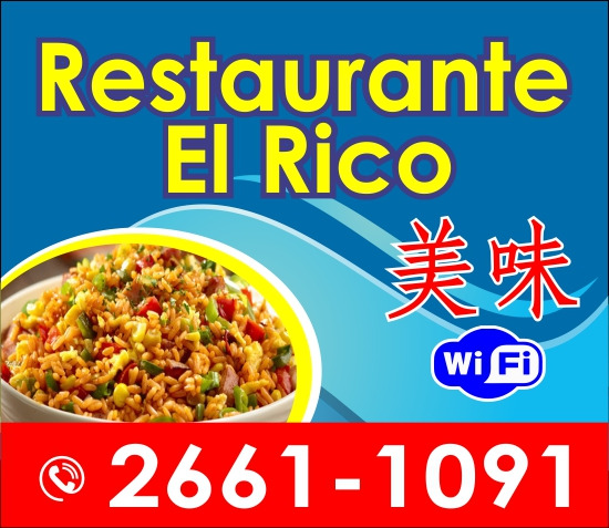 Bienvenido a nuestro pagina web! Restaurante El Rico esta en puntarenas centro. Les ofrecemos varias platos buenos:comida china o comida tica Las comidas de aqui son delisiosas y baratas ,muy econimicas. La gente dicen:aqui bueno,rico,barato!!! |